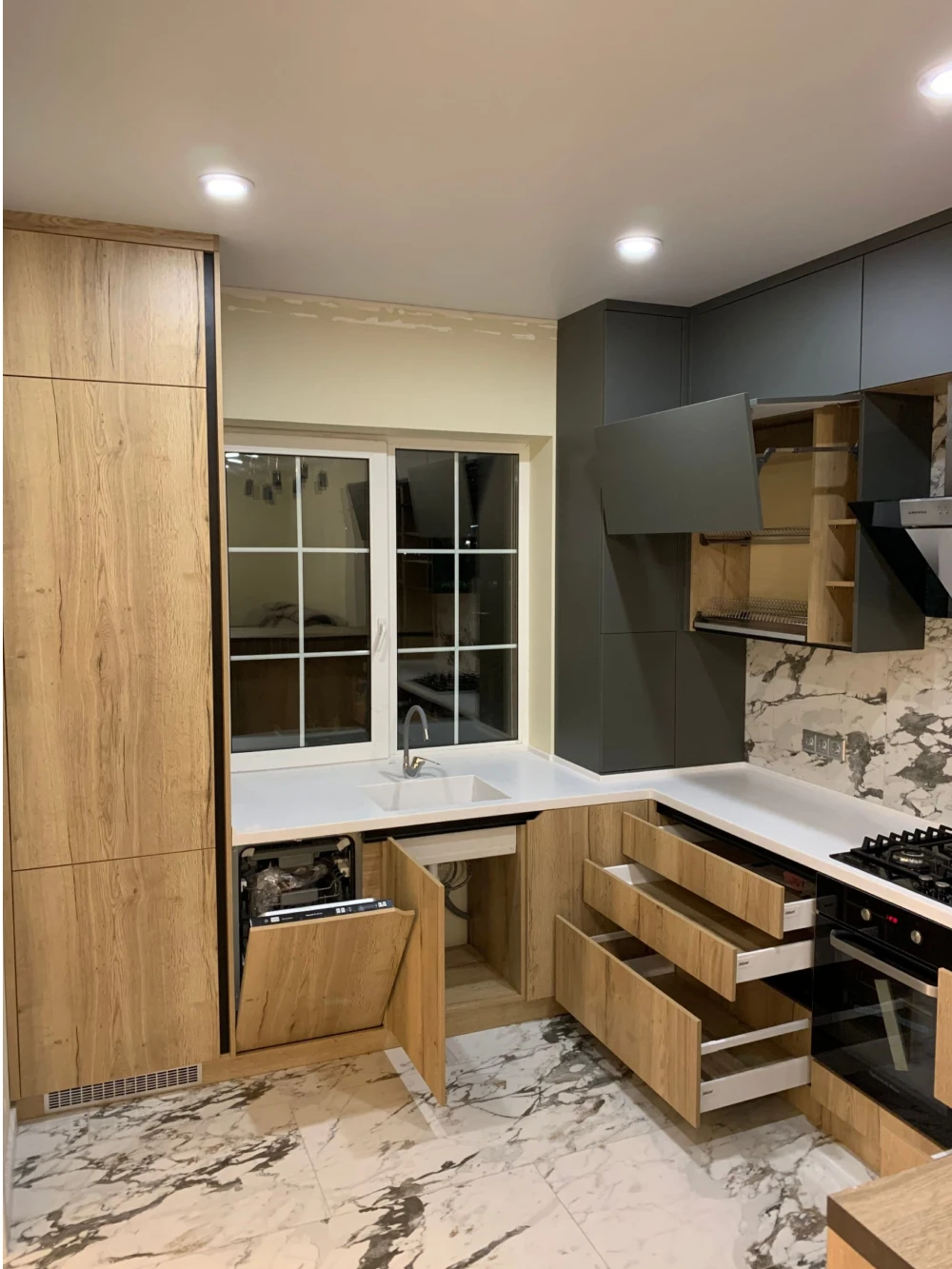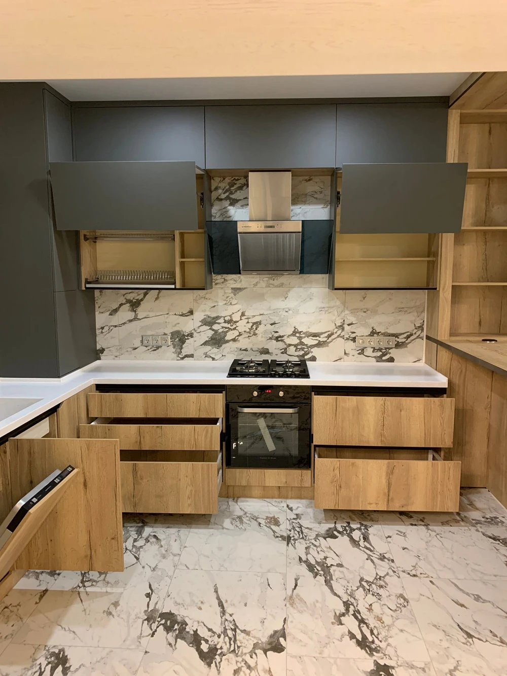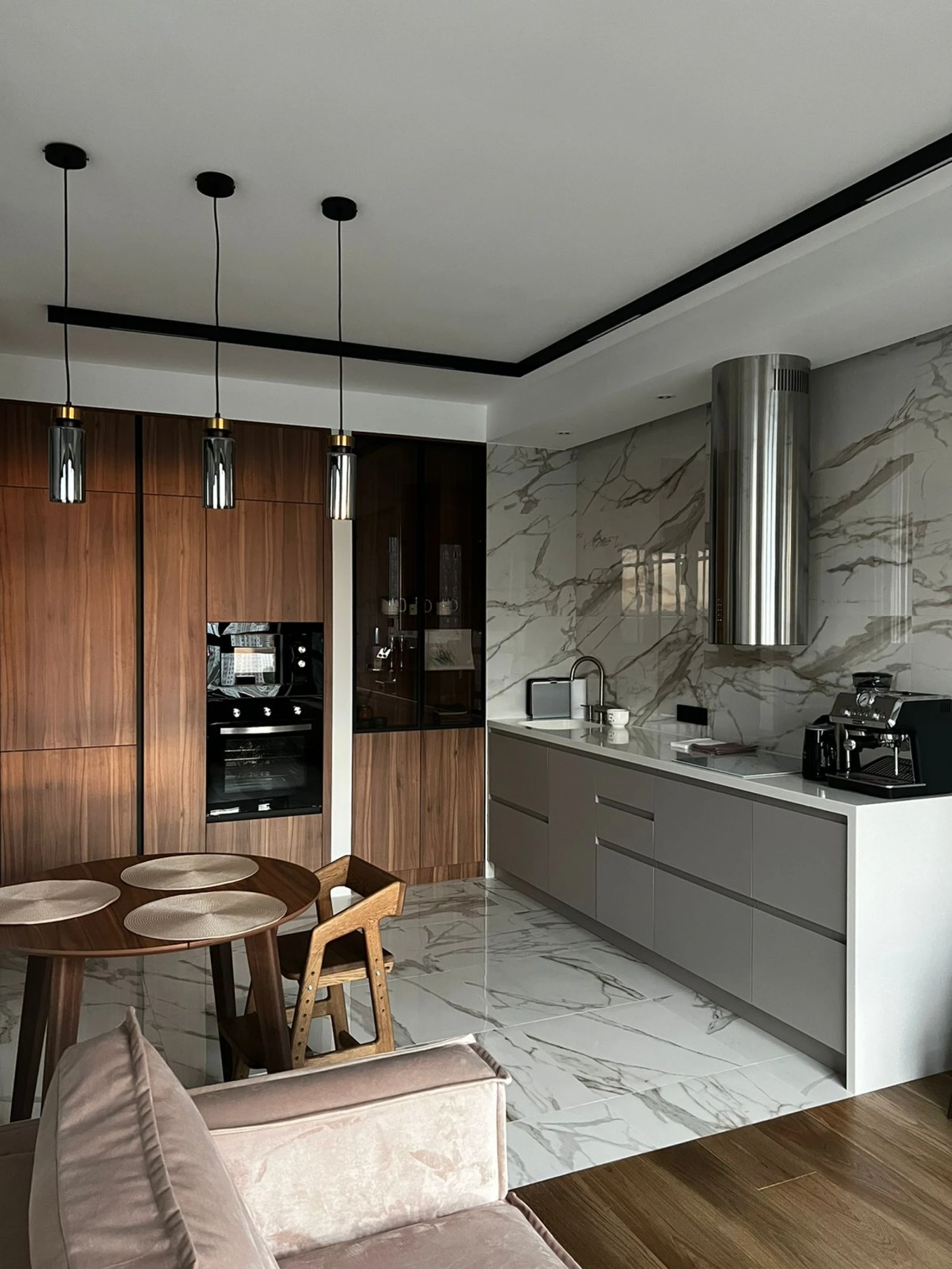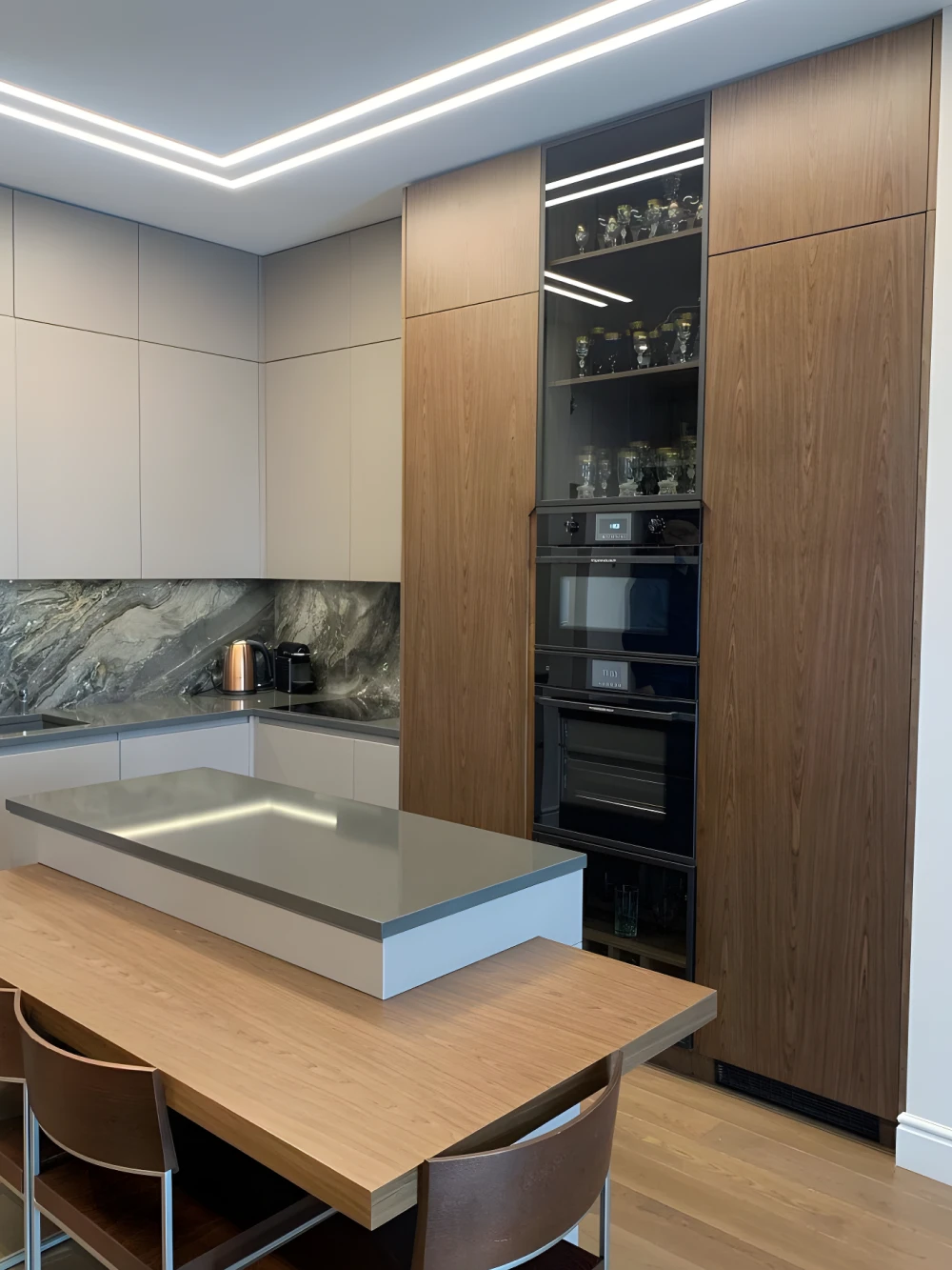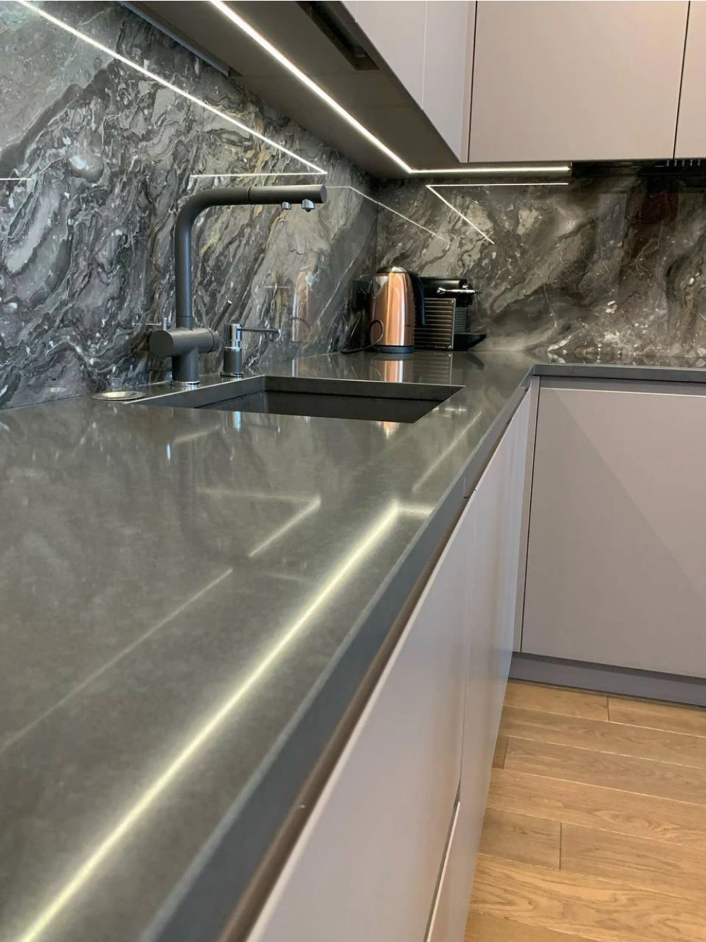 Задействуем каждый сантиметр пространства. Продумывая систему управления, чтобы кухня была максимально удобной. Подбирая материал для столешниц, учитываем износостойкость и прочность. Каждый проект уникален.