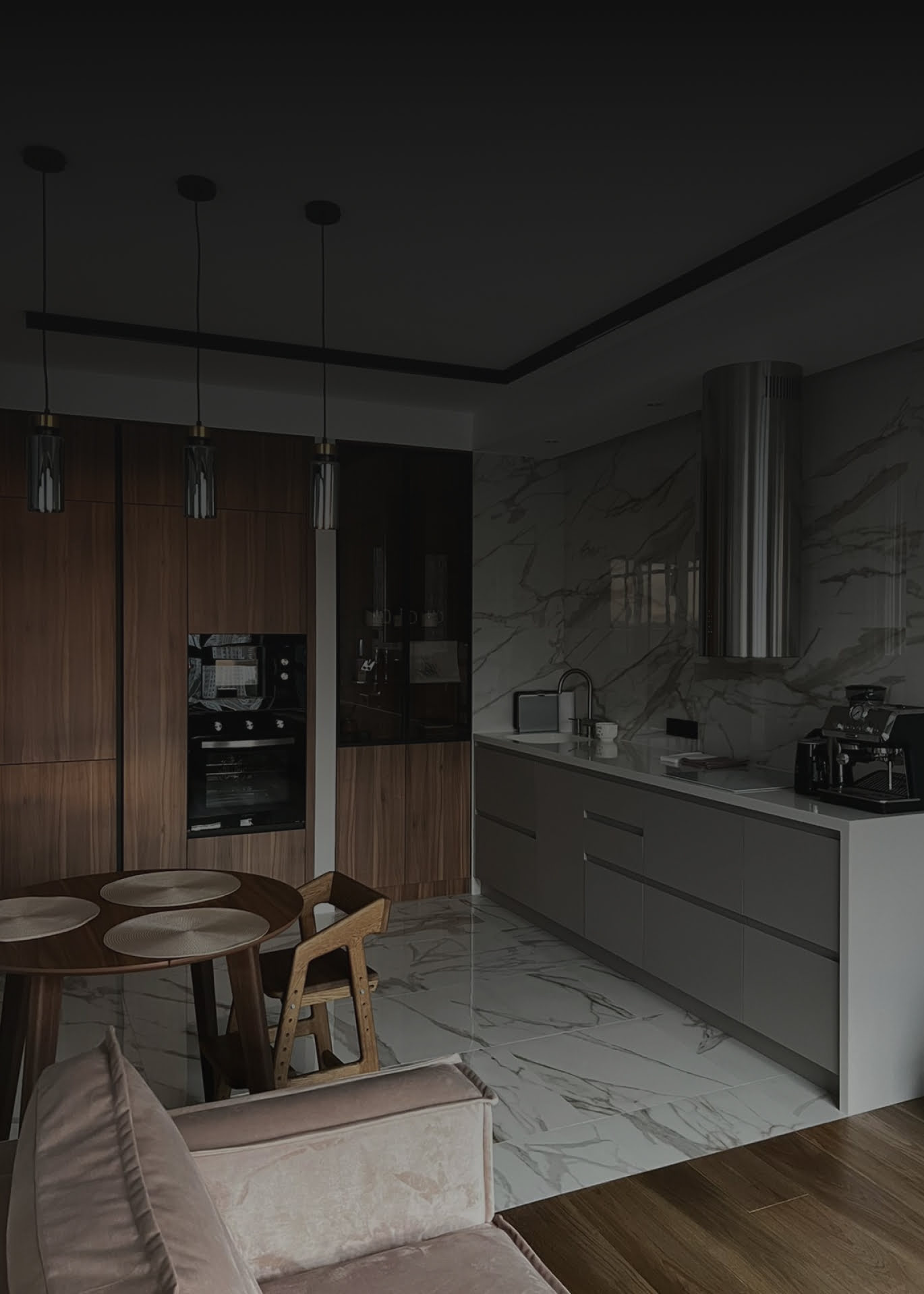 Задействуем каждый сантиметр пространства. Продумывая систему управления, чтобы кухня была максимально удобной. Подбирая материал для столешниц, учитываем износостойкость и прочность. Каждый проект уникален.